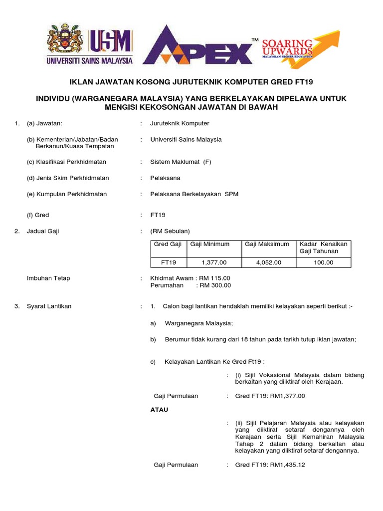 Gaji Kelayakan Tugas Juruteknik Komputer Gred Ft19 Spa